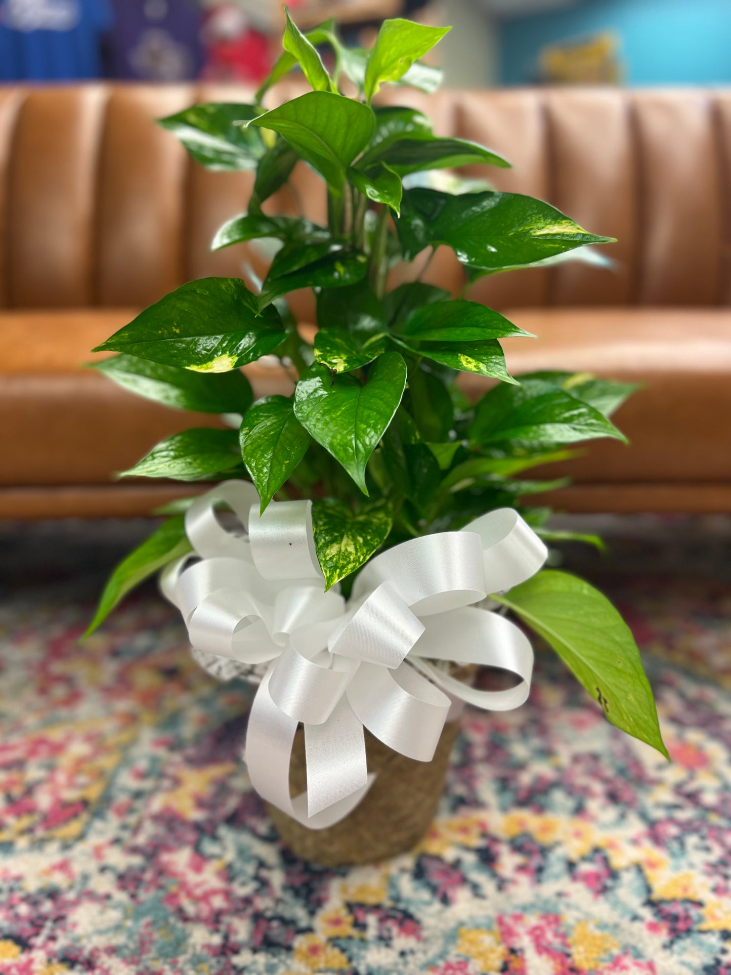 Pothos plants are known for their beautiful and vibrant foliage. This plant tends to have light green or white or yellow variegated heart-shaped leaves that are slightly pointy. Beautiful plant for any occasion.