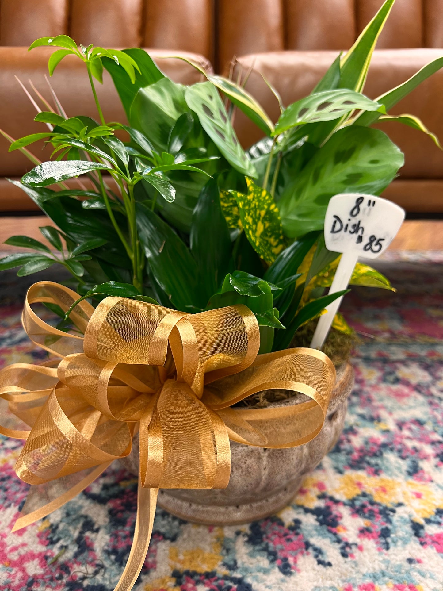 Bring the outdoors in with this lush green potted garden. Arranged in a ceramic pot, the assortment of living potted plants can be enjoyed inside. You can't go wrong with this versatile, long-lasting gift. Great for any occasion. Container and bow will vary.