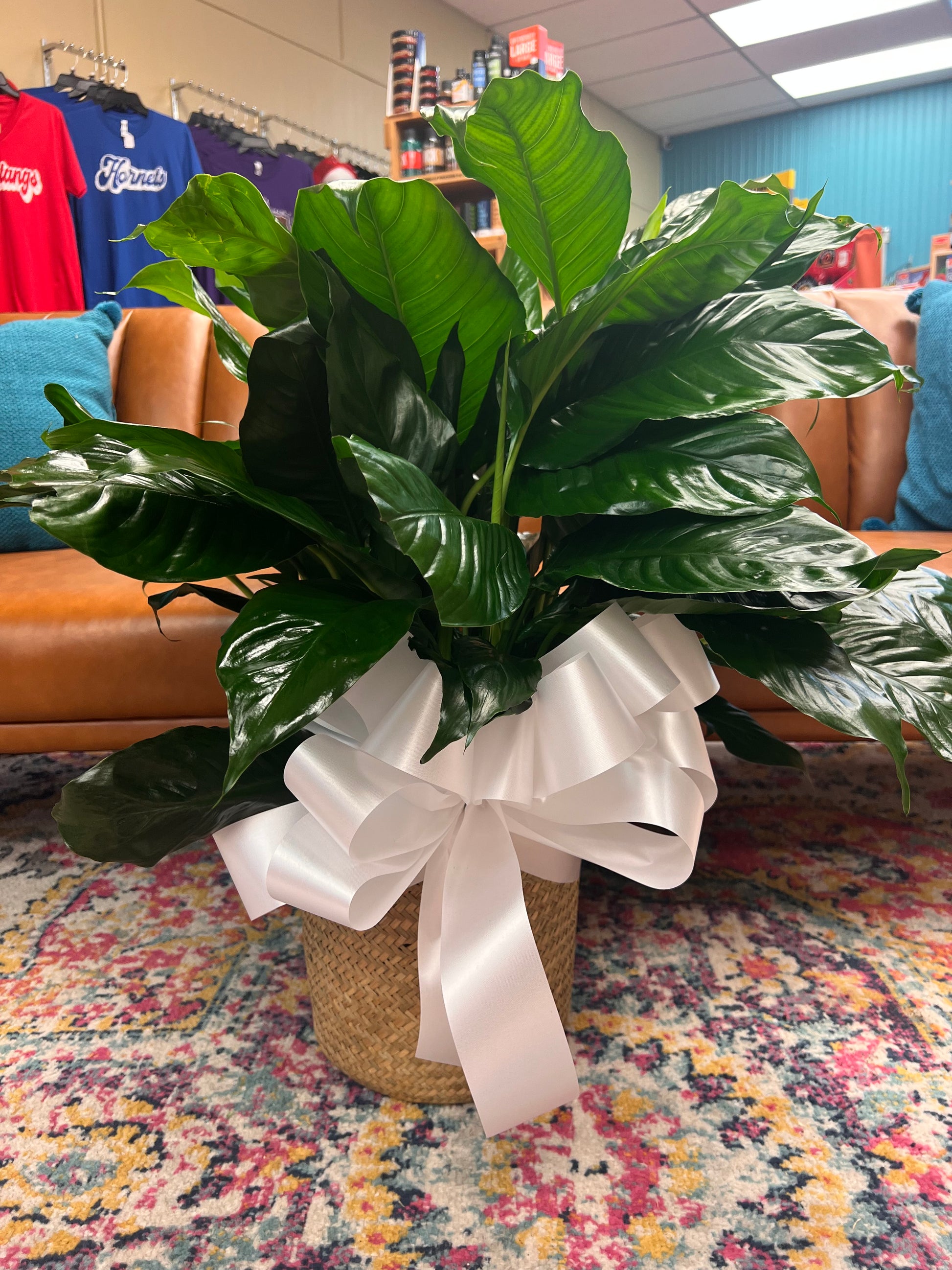 An elegant 8" peace lily plant, which exhibits brilliant white tear-shaped blooms amongst dark green foliage for a simply beautiful effect.
