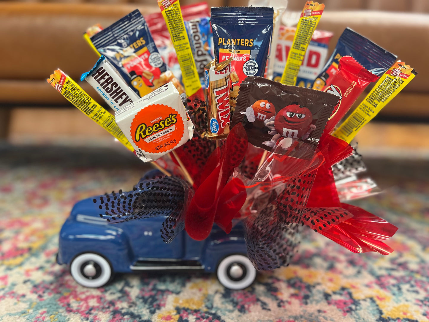 Teleflora's charming ceramic replica of the legendary '48 Ford F-1 pickup with an assortment of fun size candy bars and snacks. Select better or best for more treats!!