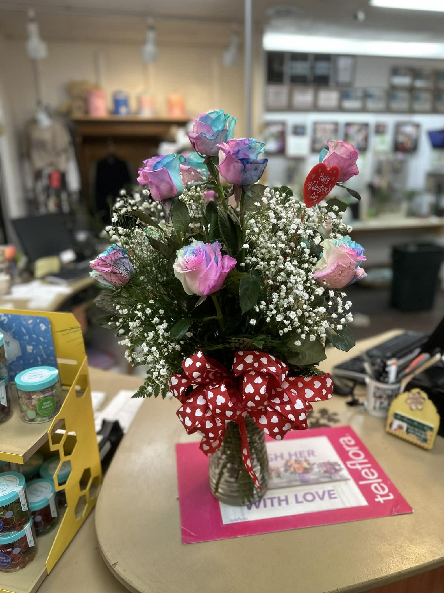 The Rainbow Rose Bouquet is a unique gift they will always remember. These kaleidoscope inspired roses have been dyed so that each petal displays a different vibrant hue of either yellow, blue, green, purple or pink.