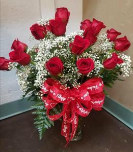 Two dozen of the finest red roses stand royally among shimmering accents of baby's breath. This gorgeous bouquet sends your message of love directly to the heart - give the thrill of romance to someone special today!